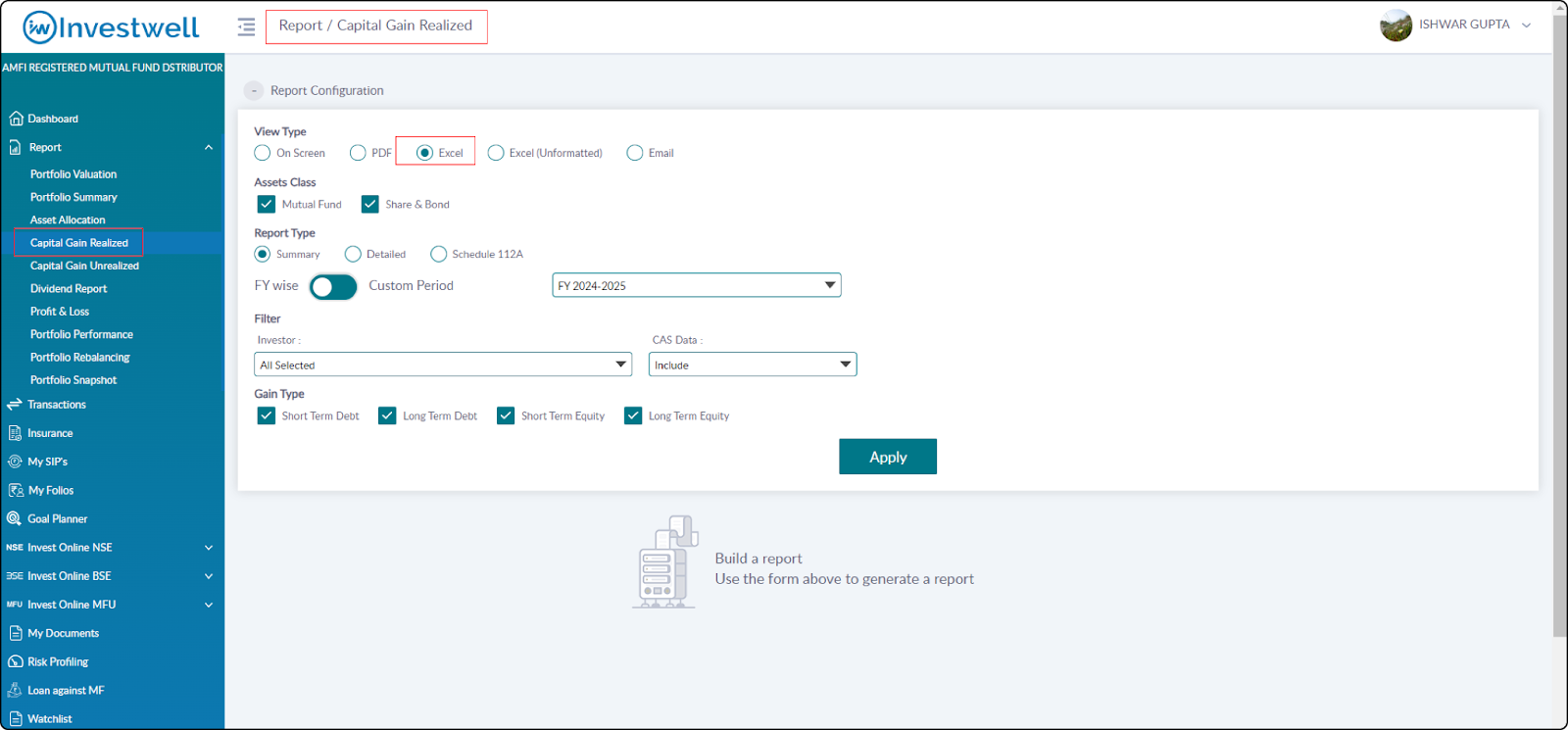 Dashboard > Investor Dashboard > Report > Capital Gain Realized