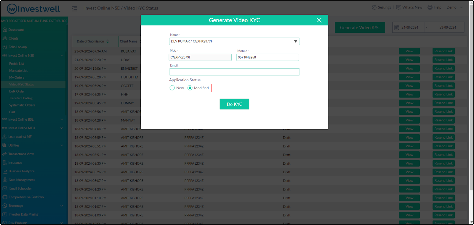 With the latest update, users can now select the KYC Modification mode as either New or Modified while generating the Video KYC link.