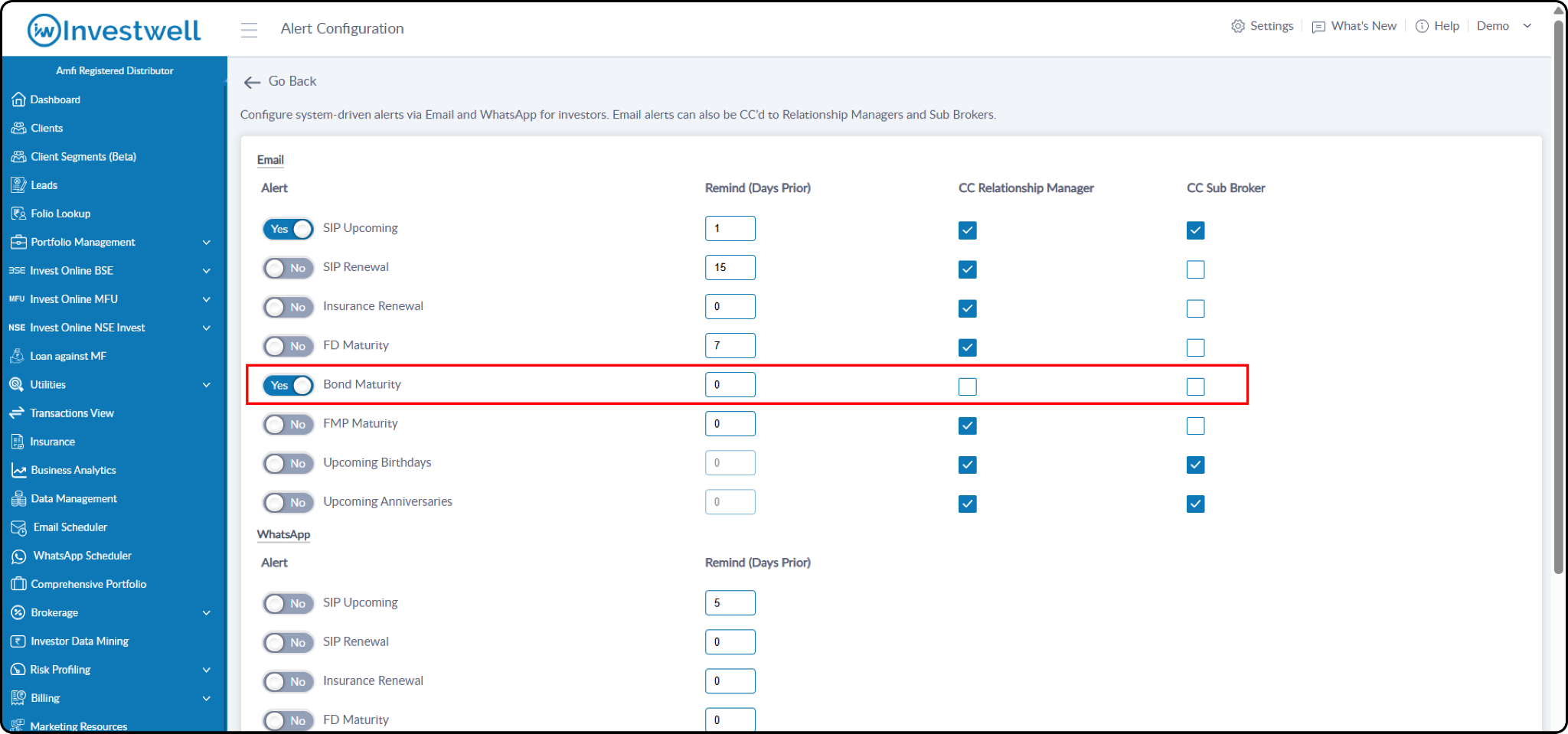 New Alert – Bond Maturity Alert Added in Alert Reports:
