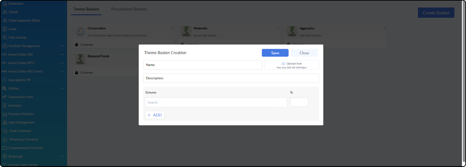 Broker Dashboard > Settings > Baskets > Theme Baskets