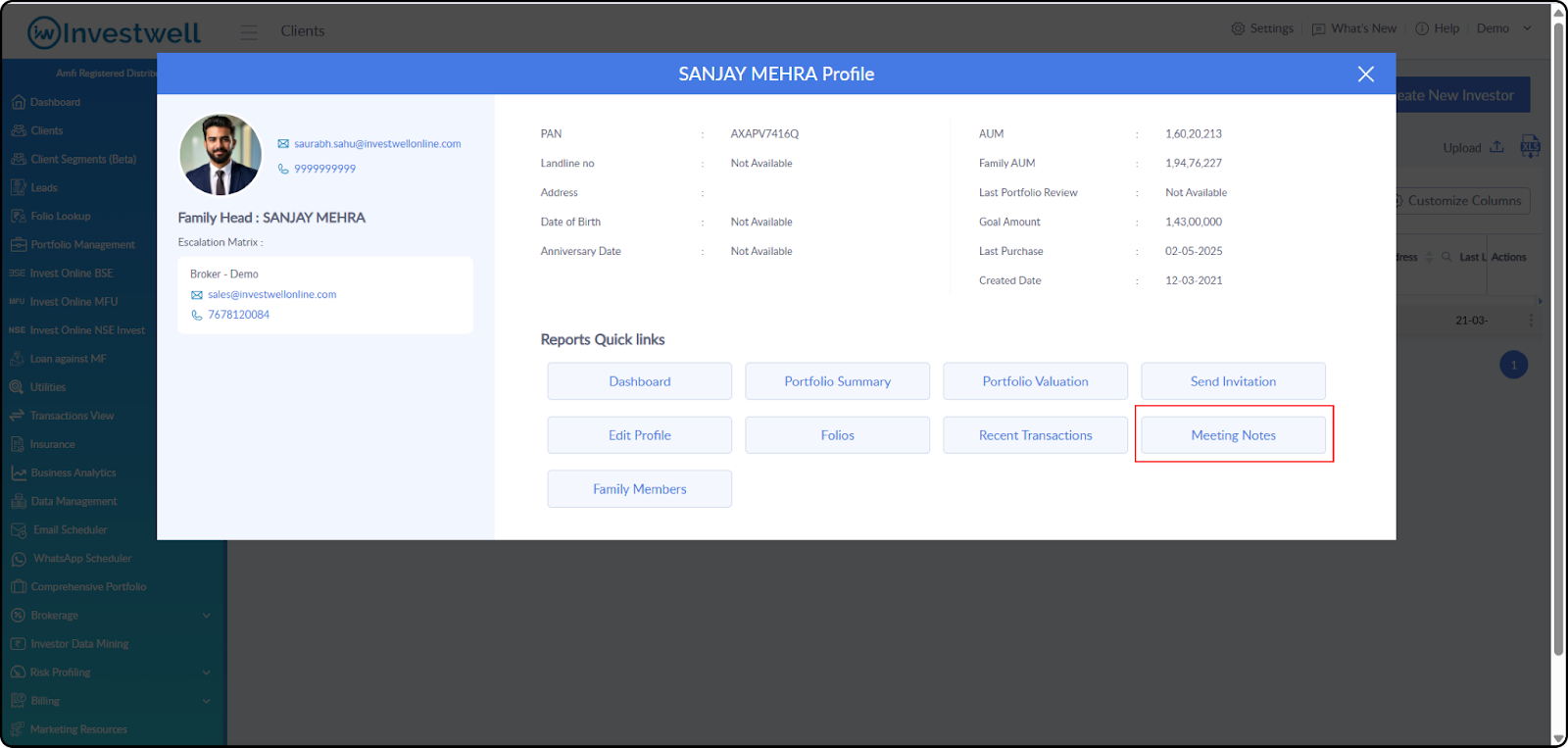 We’ve added a Meeting Notes tab to the Client Profile page. When a broker opens a client’s profile and clicks the Meeting Notes tab, they are redirected to the Meeting Notes menu with a filtered list showing all notes created for that specific client.
