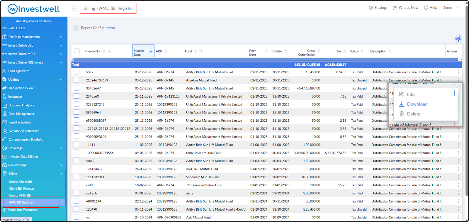 Dashboard > Billing > AMC bill Register