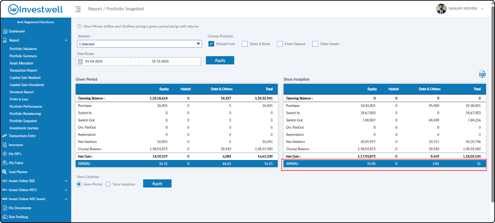 A client noticed that the XIRR shown in the Portfolio Summary did not match the XIRR shown in the Portfolio Snapshot Report for the same period and for the same asset types, like Mutual Funds and Shares, and Bonds.