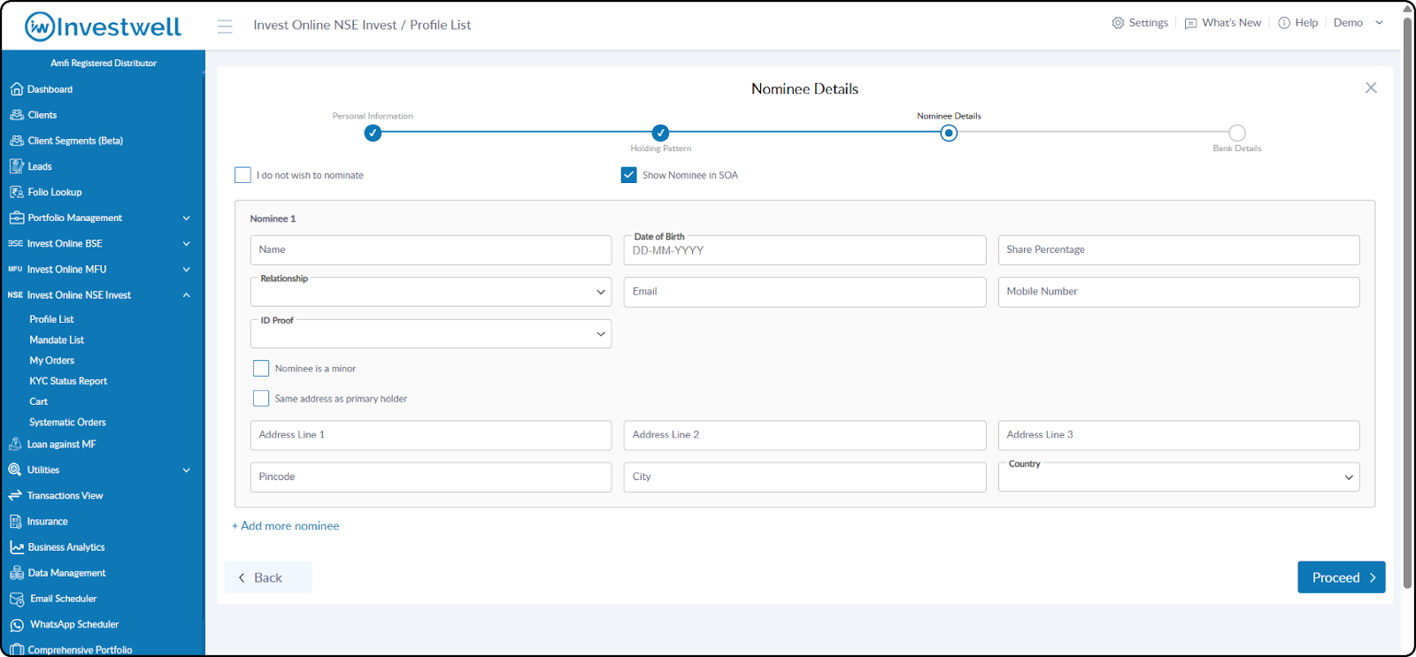 To align with NSE regulatory compliance, we have updated the character limit for entering nominee addresses. The address field will now allow up to 40 characters.