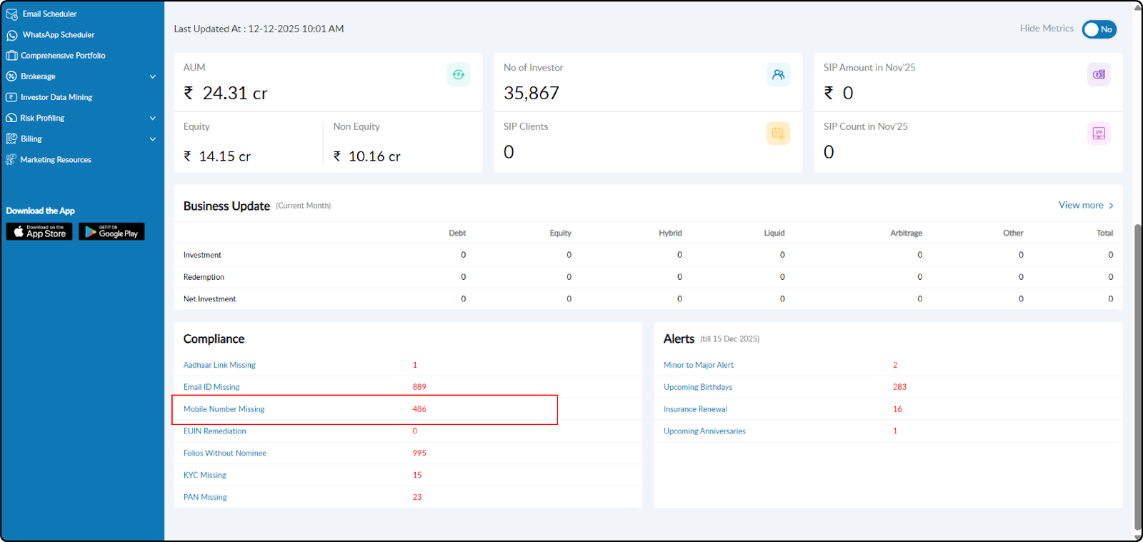 Mobile Number Missing Data Not Showing in Dashboard – Compliance Section: