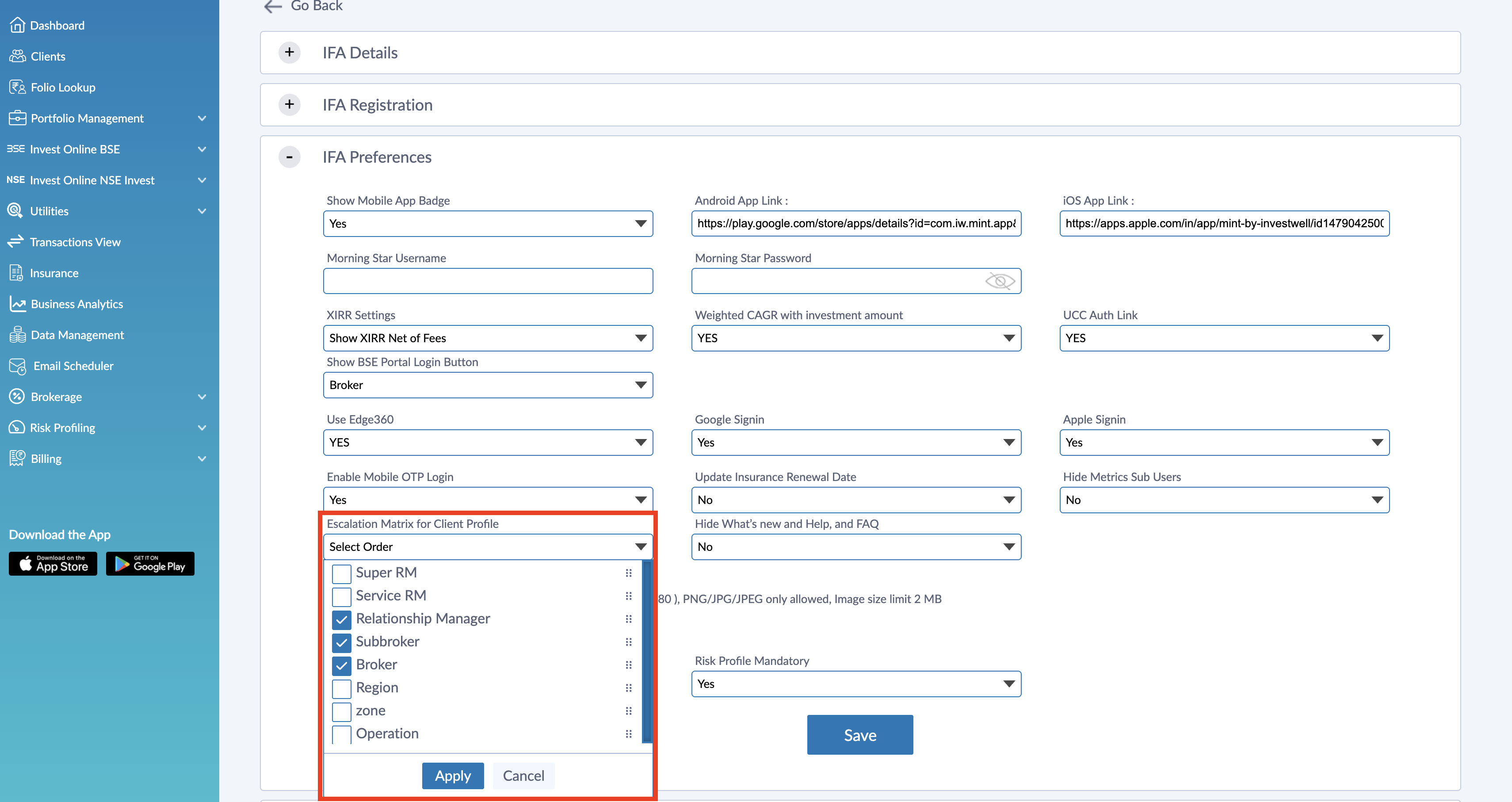 You can configure the escalation matrix from Settings >> Portal Settings >> IFA preferences page.